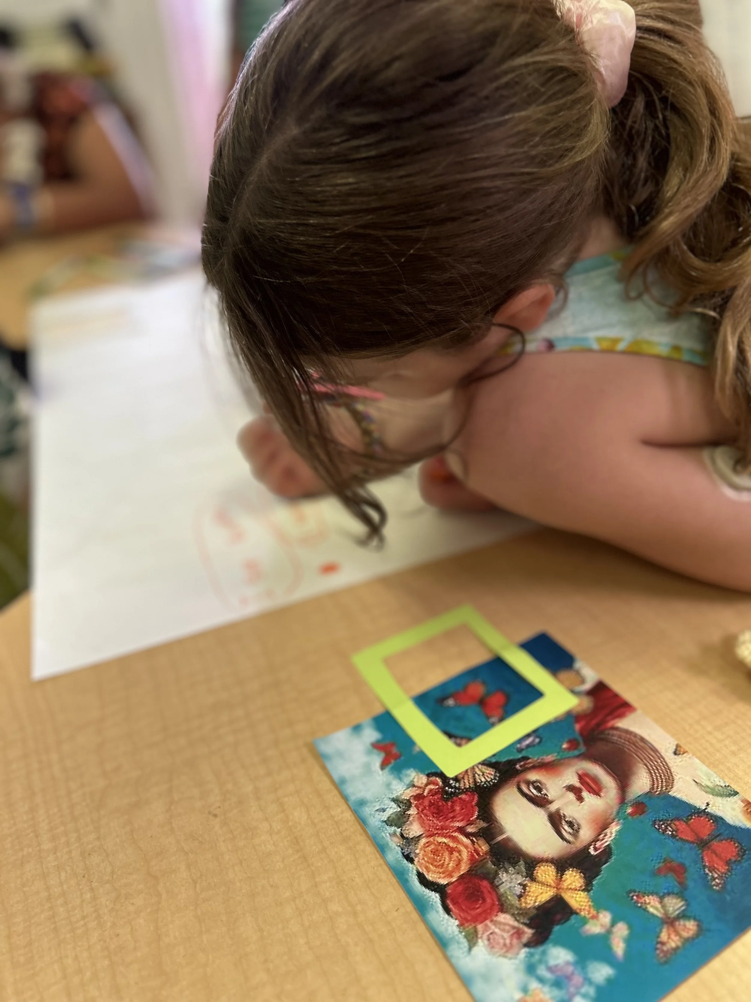 Noticing frames, quite simply, are a variety of shapes cut into frames. Whether it be circles, squares, or rectangles, noticing frames are used to support independence, critical thinking, collaboration, and language acquisition. Typically noticing frames are introduced and utilized during a provocation experience, inviting students to look more closely, sharpen their eye, for detail and get more specific in their observations.